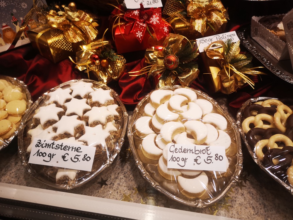 Wir schlenderten an den Buden und Geschäften vorbei, konnten so einiges bestaunen und manch einer fand ein paar Weihnachtsgeschenke. Glücklicherweise konnte der Regenschirm bald eingepackt werden und wir genossen Glühwein, Snacks, süße Leckereien usw. und lauschten einer Bläsergruppe.