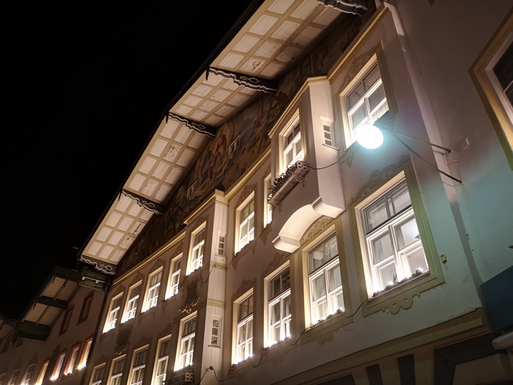Die Fenster bei den Häusern in den Gassen waren mit Lichterketten hell erleuchtet und man konnte die bunt bemalten Hausmauern und Vordächer bestaunen.