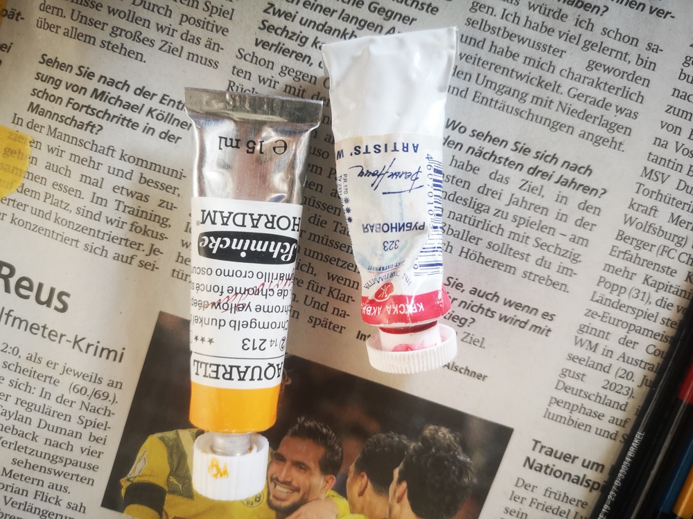 An einem sonnigen Mittwochnachmittag trafen wir uns im Pfarrzentrum zum Malen. Zehn Personen an einem vereinten großen Tisch.