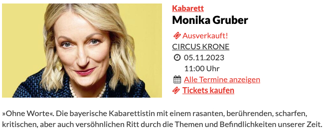Mit zwei vollbesetzten Bussen machte sich die SFG am Samstagabend auf nach München in den Circus Krone Bau um eine der ausverkauften Abschiedsshows von Kabarettistin Monika Gruber zu erleben.