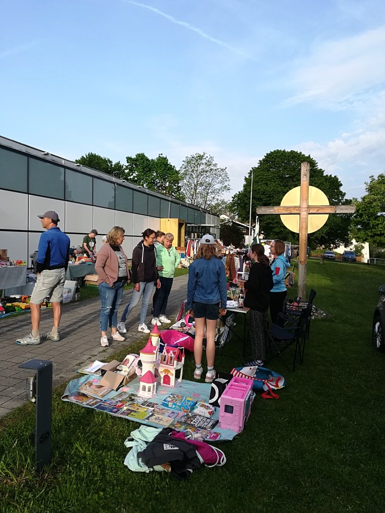 Ein wunderschöner Sonnenaufgang begrüßte am 3. Mai die ersten Standlleute zum Aufbau ihrer Warentische. Nach und nach füllten sich die Reihen neben den Wegen des Pfarrzentrums und unter den Bäumen. Auch die ersten Interessenten kamen um zu suchen, schauen, zu vergleichen und auch zu kaufen.
