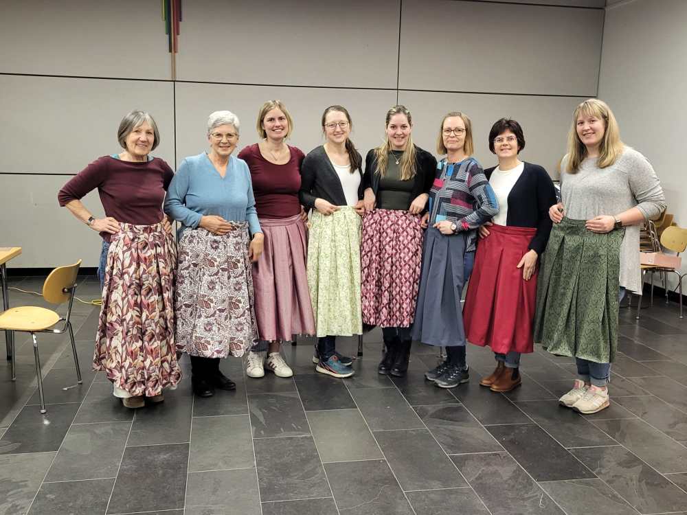 An zwei Abenden im Februar kam eine Gruppe Frauen zusammen, um unter Anleitung von Schneiderin Elisabeth Fischer einen festlichen Rock zu nähen. Mit viel Einsatz und Fingerspitzengefühl sowie auch einigen Stunden Heimarbeit entstanden so wunderschöne Röcke für festliche Tage.