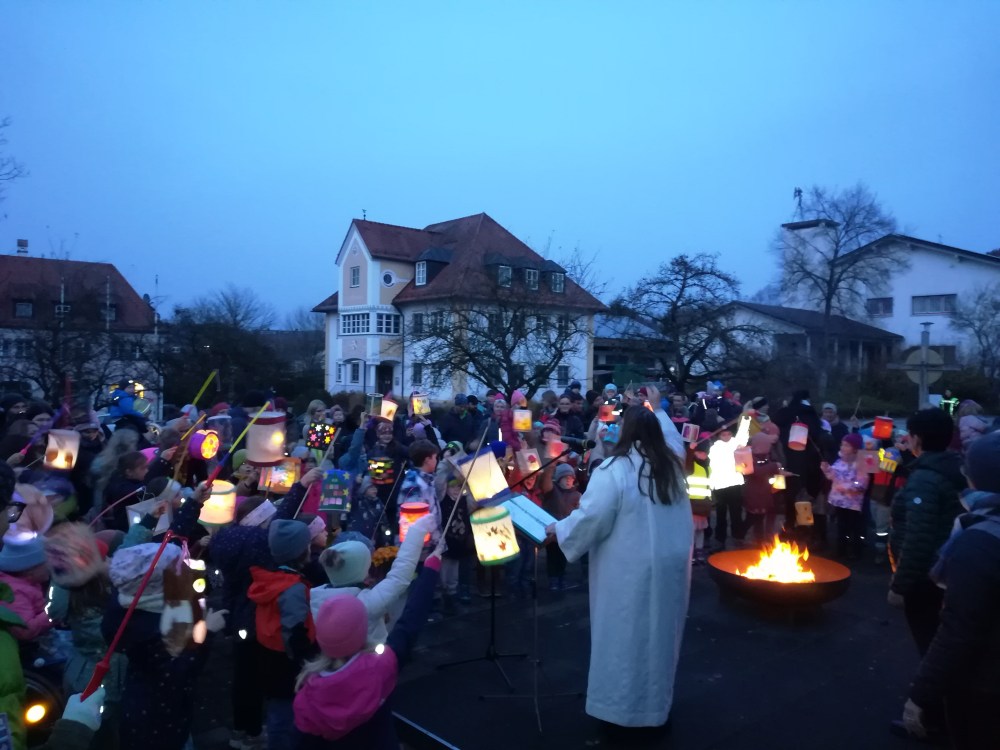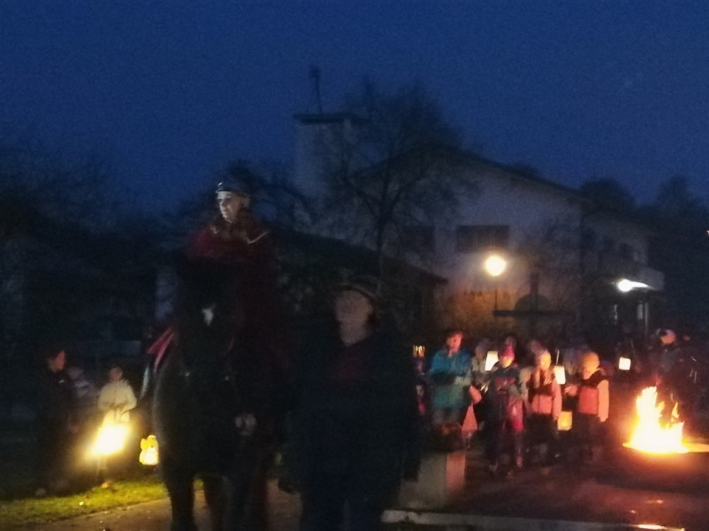 Mit Einbruch der Dunkelheit ritt der Hl. Martin in Begleitung eines schier endlosen Laternenmeers und von zwei Bläsergruppen durch die Siedlung am Pfarrzentrum. Zurück am Ausgangspunkt gab die Frauengemeinschaft den Kindern die traditionellen Martinsgänse. An der wärmenden Feuerschale genossen Klein und Groß Kinderpunsch und Glühwein, Lebkuchen und warme Leberkassemmel. Fröhliches Kinderlachen und die Unterhaltung der Erwachsenen klang noch lange in den spät herbstlichen Abend hinein.