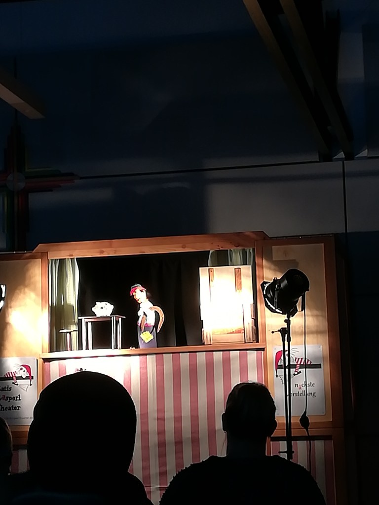 Und es begann mit einer vertrauten Szene: Kasperl musste seiner Großmutter beim Aufräumen helfen und fand dabei ein Sparschwein. Überglücklich ging Kasperl damit zum Metzger, um es schlachten zu lassen und Gutes für Großmutter zum Kochen mitzubringen.
